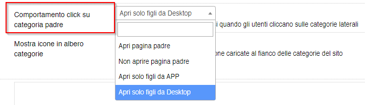 - la seconda indica al sistema di espandere sempre l'albero delle categorie senza aprire la pagina della categoria principale;