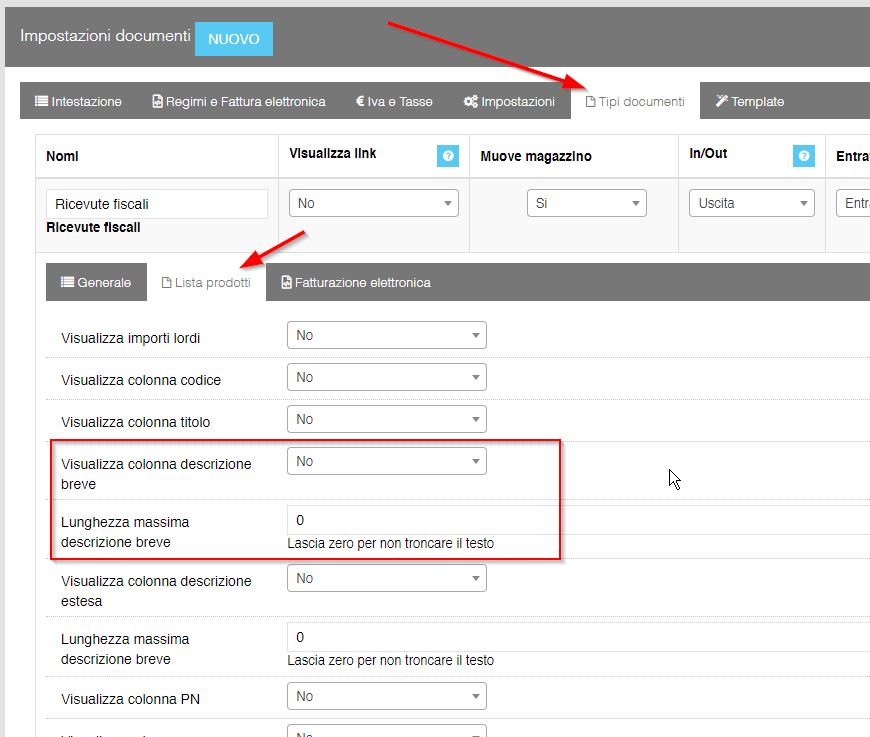 Per visualizzare la descrizione degli articoli all'interno dei documenti è necessario modificare le impostazioni della tabella prodotti dei documenti.