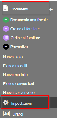 Per procedere basterà andare nel menù principale alla sezione Documenti -> Impostazioni: