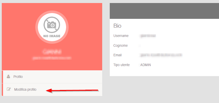 Si accede alla pagina di visualizzazione profilo. Da questa pagina si accede alla modific del proprio profilo: