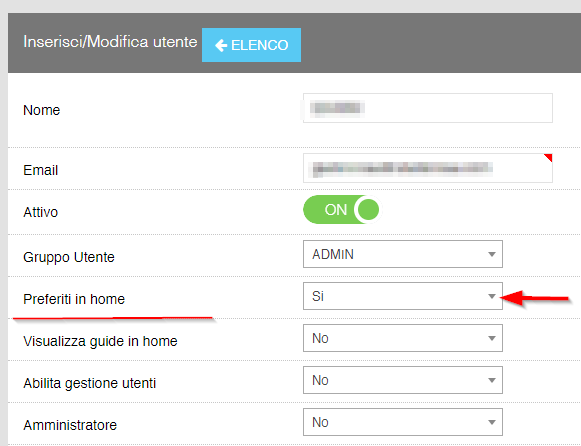 Una volta aperta la pagina di modifica bisognerà impostare "Preferiti in hom" a si: